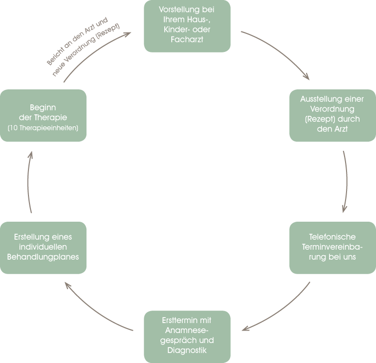• Ausstellungsdatum (der erste Termin muss spätestens 28 Tage nach Ausstellung des Rezeptes erfolgen, ansonsten wird die Therapie von den Krankenkassen nicht übernommen, ggf. kann ein spätester Behandlungsbeginn vom Arzt auf dem Rezept eingetragen werden)